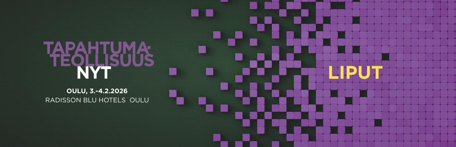 Tapahtumateollisuus NYT 2026 EARLY BIRD -liput ovat myynnissä nyt. Tarjous on voimassa rajoitetun ajan rajoitetun ajan. Hanki liput NYT, niin et jää ilman!